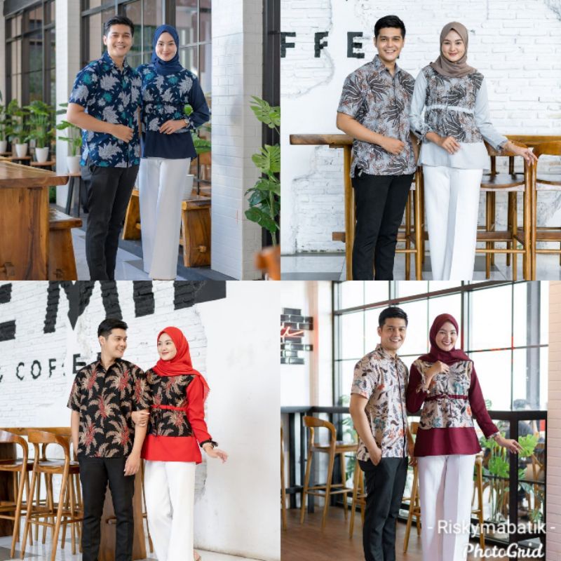 Beli (BISA COUPLE) Batik Wanita Kekinian Blouse Batik Brokat Batik Kombinasi by riskymabatik di sini